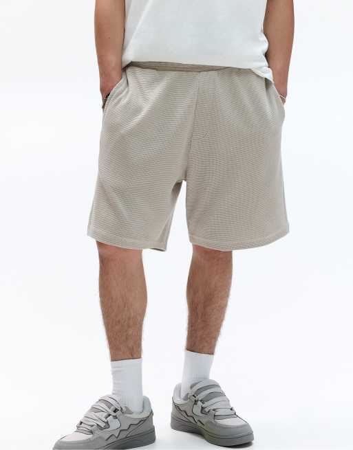 Pull&Bear – Bermudashorts aus Strick in Grau meliert mit Waffelstruktur