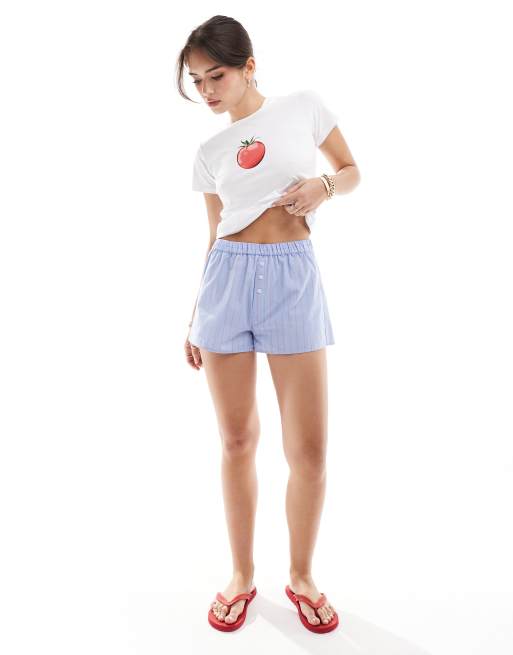 Pull&Bear – Boxershorts aus Webstoff in Blau gestreift