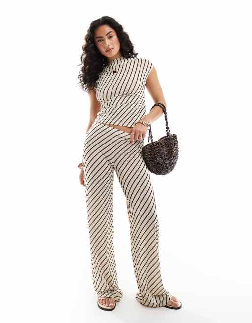 Pull&Bear – Braun-weiß gestreiftes, einärmliges Oberteil, Kombiteil