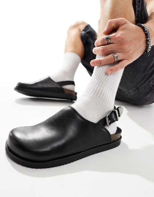 Pull&Bear – Clogs zum Reinschlüpfen in Schwarz mit Fersenriemen