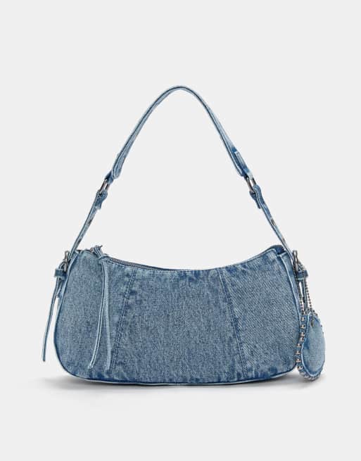 Pull&Bear – Denim-Schultasche in Blau mit dekorativem Detail