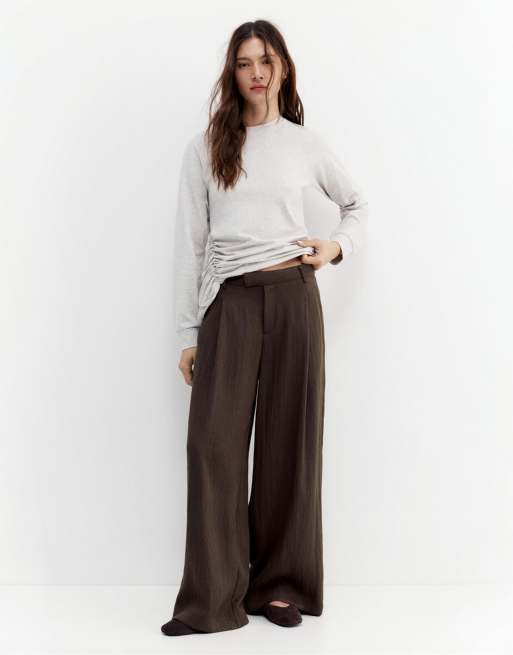Pull&Bear – Elegante Hose in Braun mit Abnähern