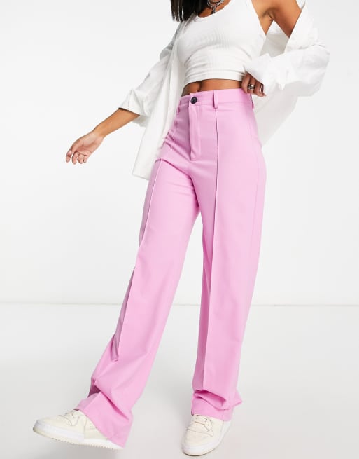 Pull&Bear – Elegante Hose in Rosa mit hohem Bund, geradem Schnitt und Ziernaht vorne