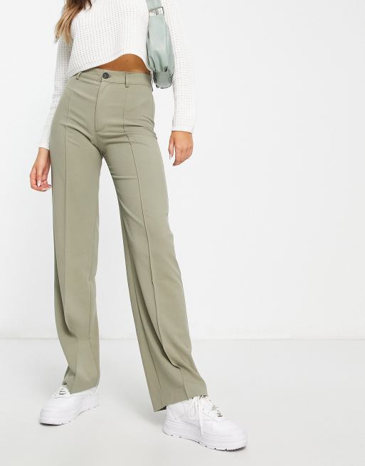 Pull&Bear – Elegante Karottenhose in Grün mit Ziernaht vorne