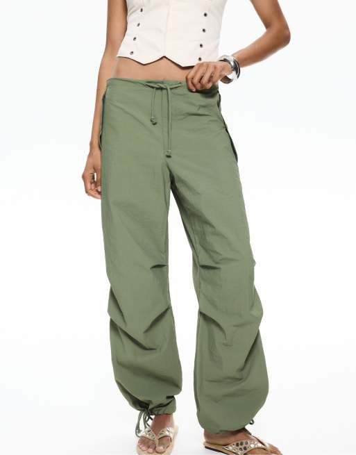 Pull&Bear – Fallschirmhose in Grün