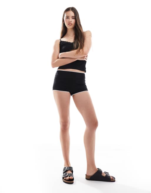 Pull&Bear – Figurformende Shorts aus Polyamid in Schwarz mit Kontrastbesatz