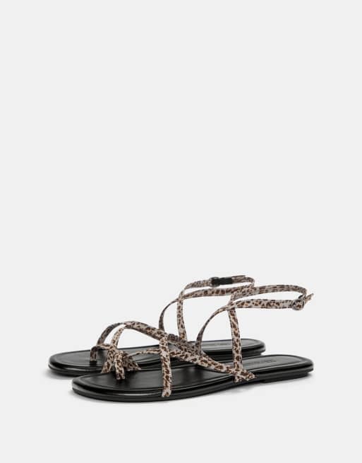 Pull&Bear – Flache Riemchensandalen mit Leopardenmuster