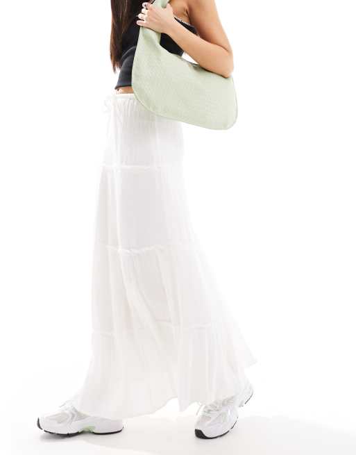 Pull&Bear – Gestufter Maxirock in Weiß