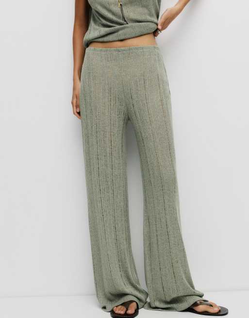 Pull&Bear – Grünliche Hose aus Feinstrick