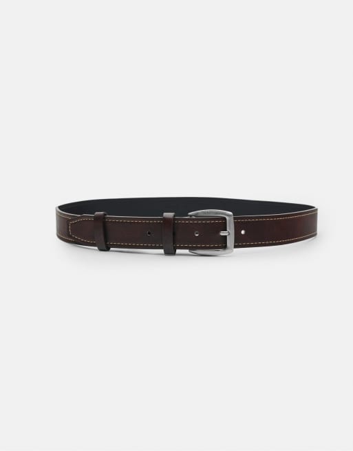 Pull&Bear – Gürtel in brauner Lederoptik mit Ziernaht