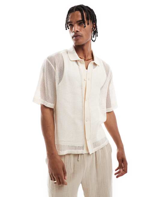 Pull&Bear – Hemd aus Häkelware in Ecru
