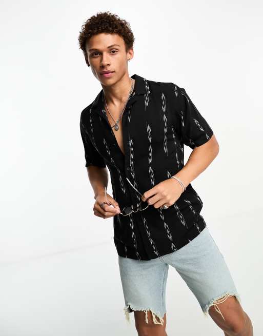 Pull&Bear – Hemd in Schwarz mit Aztekenmuster
