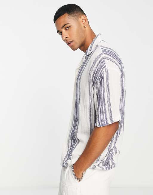 Pull&Bear – Hemd in Weiß gestreift
