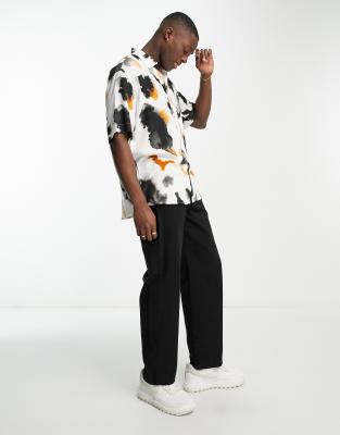 Pull&Bear – Hemd mit abstraktem Muster in Weiß und Schwarz