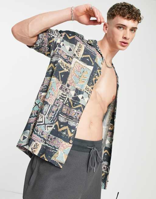Pull&Bear – Hemd mit blau-buntem Aztekenmuster