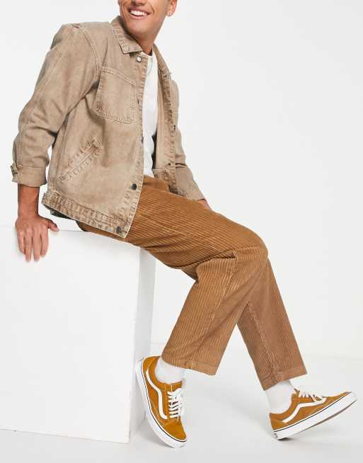 Pull&Bear – Hose aus Cord in Braun mit weitem Bein