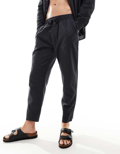 Pull&Bear – Hose aus Leinenimitat in Schwarz mit weitem Bein
