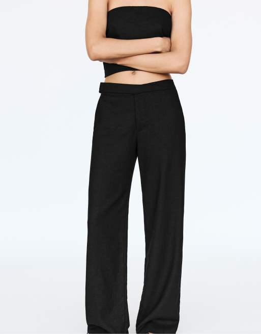Pull&Bear – Hose in Schwarz mit überkreuztem Bund