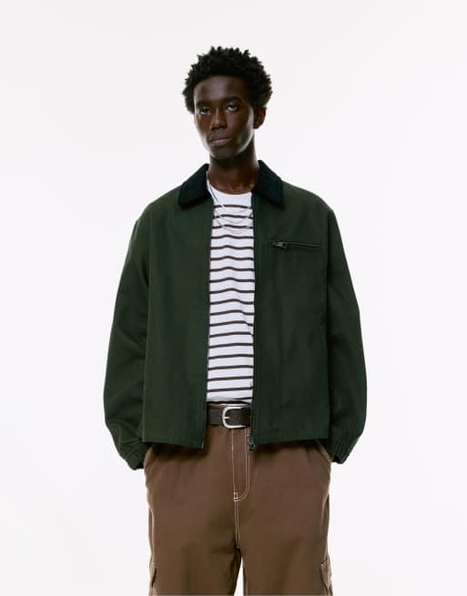 Pull&Bear – Jacke in Grün mit Kragen aus Cord