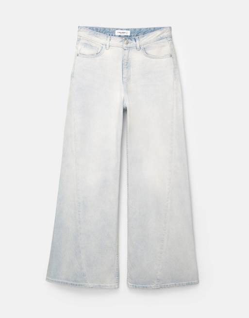 Pull&Bear – Jeans in Blau mit weitem Bein und niedrigem Bund