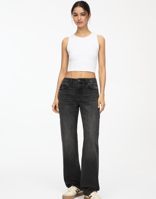 Pull&Bear – Jeans in Schwarz mit mittelhohem Bund und geradem Schnitt