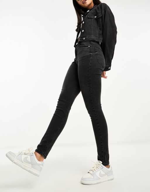 Pull&Bear – Jeans mit engem Schnitt und hohem Bund in verwaschenem Dunkelgrau