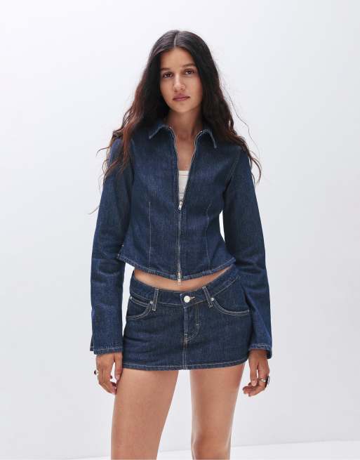 Pull&Bear – Jeanshemd in Dunkelblau mit Reißverschluss