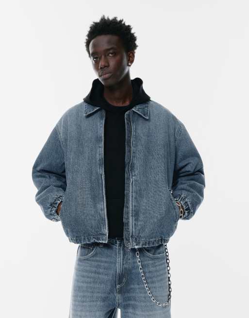 Pull&Bear – Jeansjacke in Mittelblau mit Reißverschluss