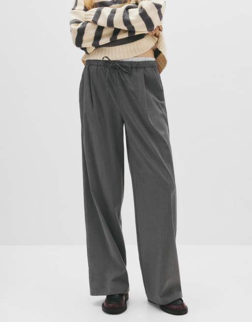 Pull&Bear – Jogginghose in Grau mit Bundfalten