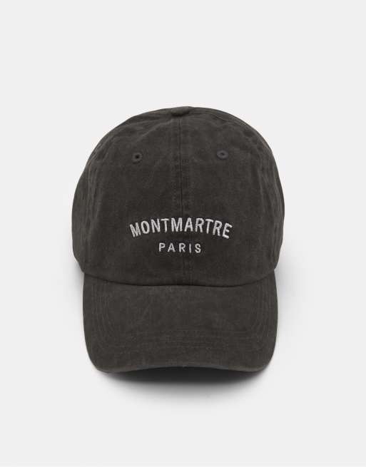 Pull&Bear – Kappe in Schwarz mit „Montmartre“-Schriftzug