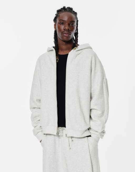 Pull&Bear – Kapuzenjacke in meliertem Grau mit Falten-Detail