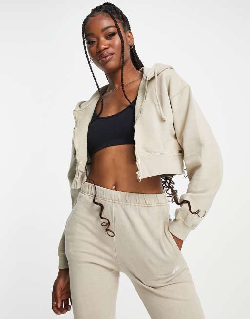Pull&Bear – Kapuzenjacke in Sand mit kurzem Schnitt und durchgehendem Reißverschluss, Kombiteil