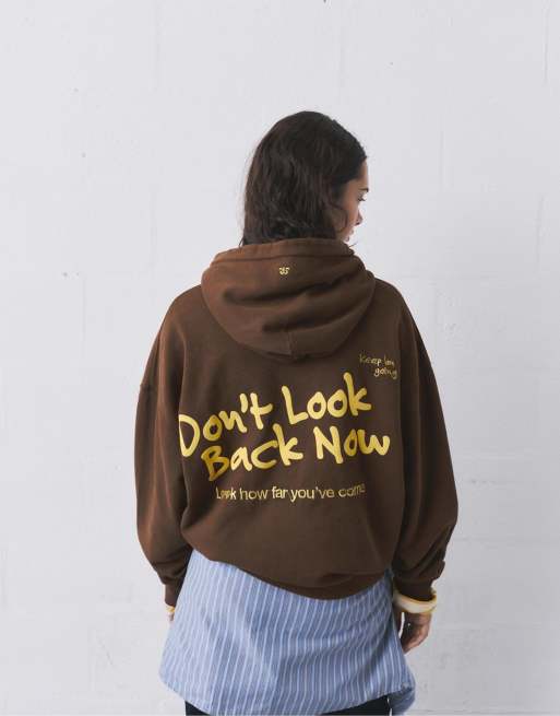 Pull&Bear – Kapuzenpullover in Braun mit gestickten Herzen
