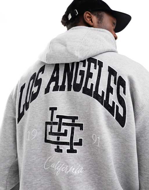 Pull&Bear – Kapuzenpullover in Grau mit „Los Angeles“-Print