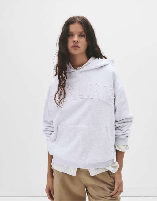 Pull&Bear – Kapuzenpullover in meliertem Grau mit „Offline“-Schriftzug