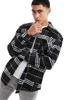 Pull&Bear – Karierte Hemdjacke in Schwarz