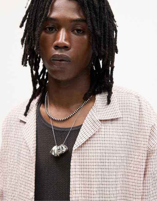 Pull&Bear – Kariertes kurzärmliges Hemd in Rot