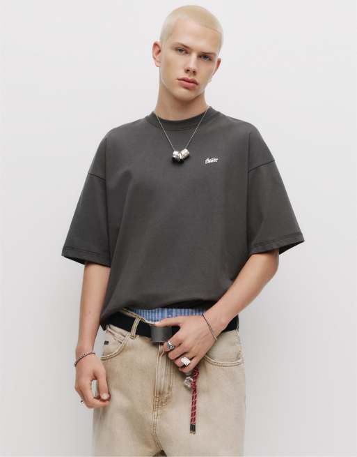 Pull&Bear – Kastiges T-Shirt in Grau mit „STWD“-Logo