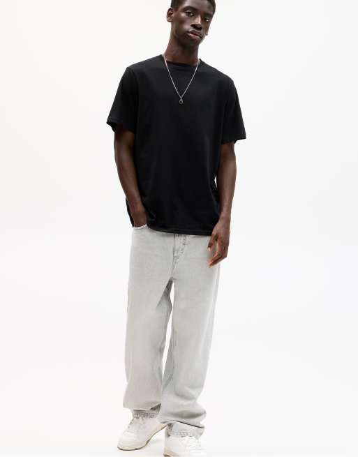 Pull&Bear – Kurzärmliges Basic-T-Shirt aus Baumwolle in Schwarz