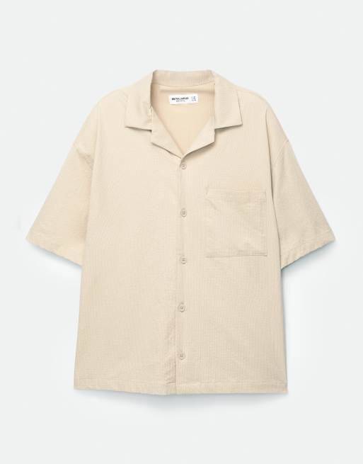 Pull&Bear – Kurzärmliges Seersucker-Hemd in Sand