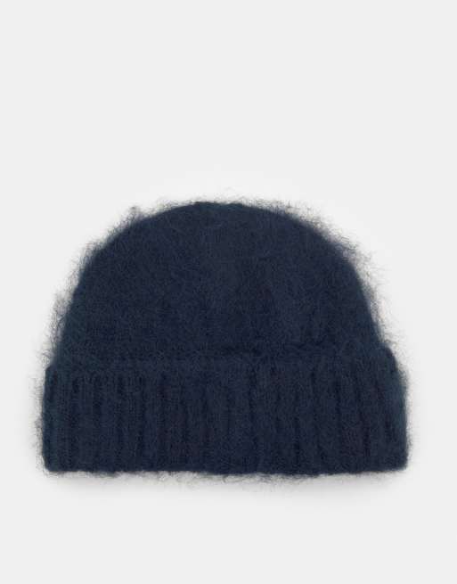 Pull&Bear – Kurze Strickmütze in Dunkelblau