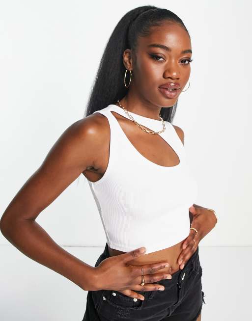 Pull&Bear – Kurzes, ärmelloses Oberteil in Weiß mit Cut-Out