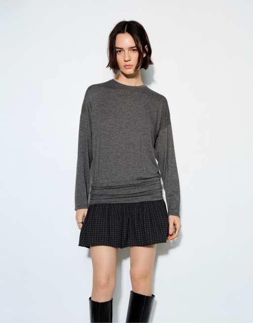 Pull&Bear – Kurzes Kleid in Dunkelgrau mit kontrastierendem Karomuster