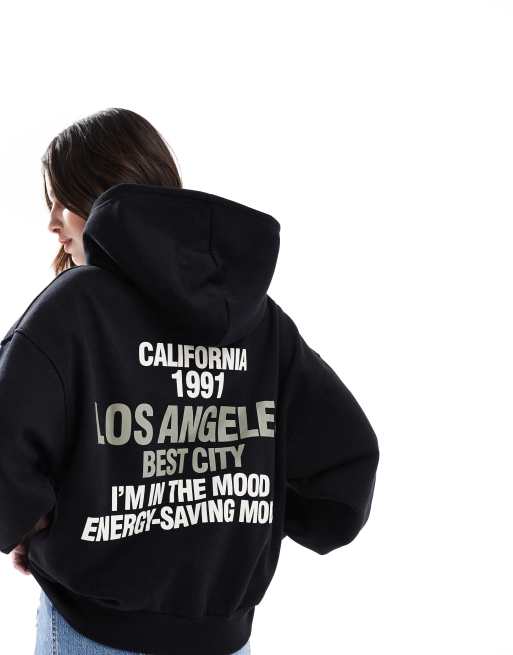 Pull&Bear – LA – Kapuzenpullover in Schwarz
