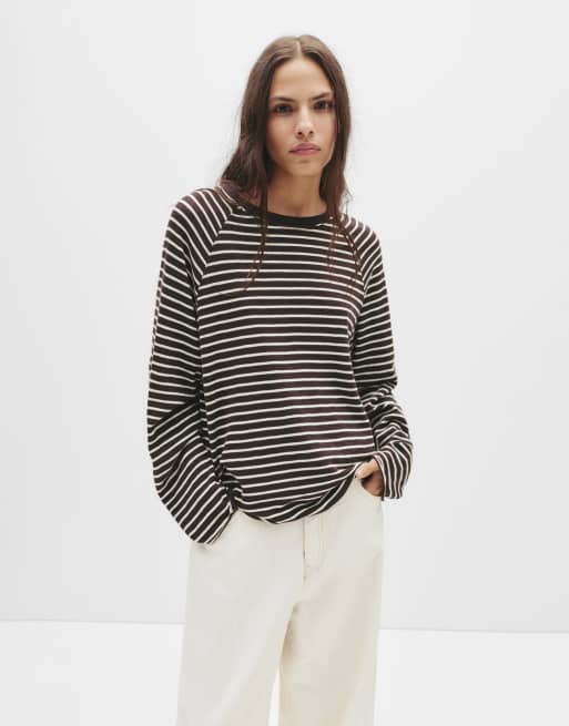 Pull&Bear – Langärmliges Raglan-T-Shirt mit Streifenmuster