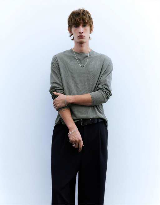 Pull&Bear – Langärmliges Shirt in Grau gestreift