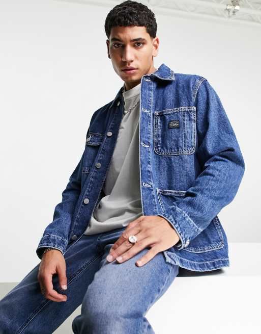 Pull&Bear – Leichte Jeansjacke in Blau mit Kontrastnaht