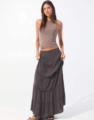 Pull&Bear – Midirock in Braun mit Bahnendesign