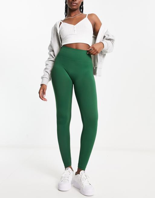 Pull&Bear – Nahtlose, gerippte Leggings in Flaschengrün, Kombiteil