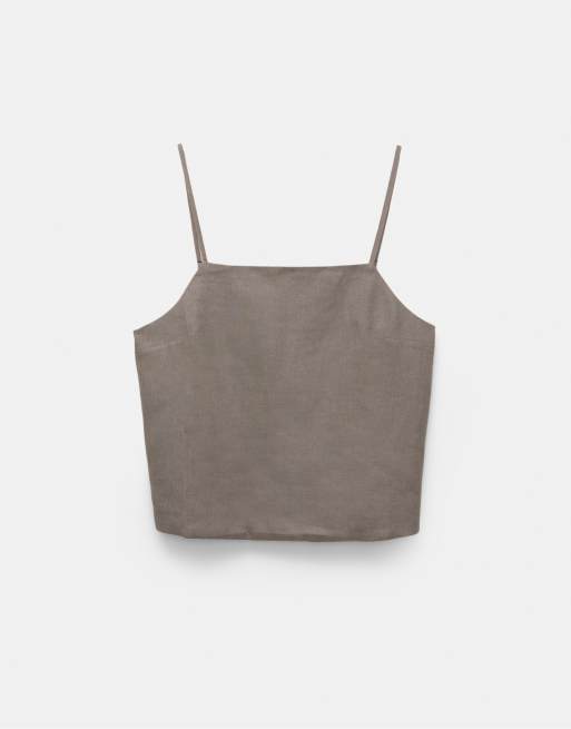 Pull&Bear – Oberteil aus 100% Leinen in Taupe